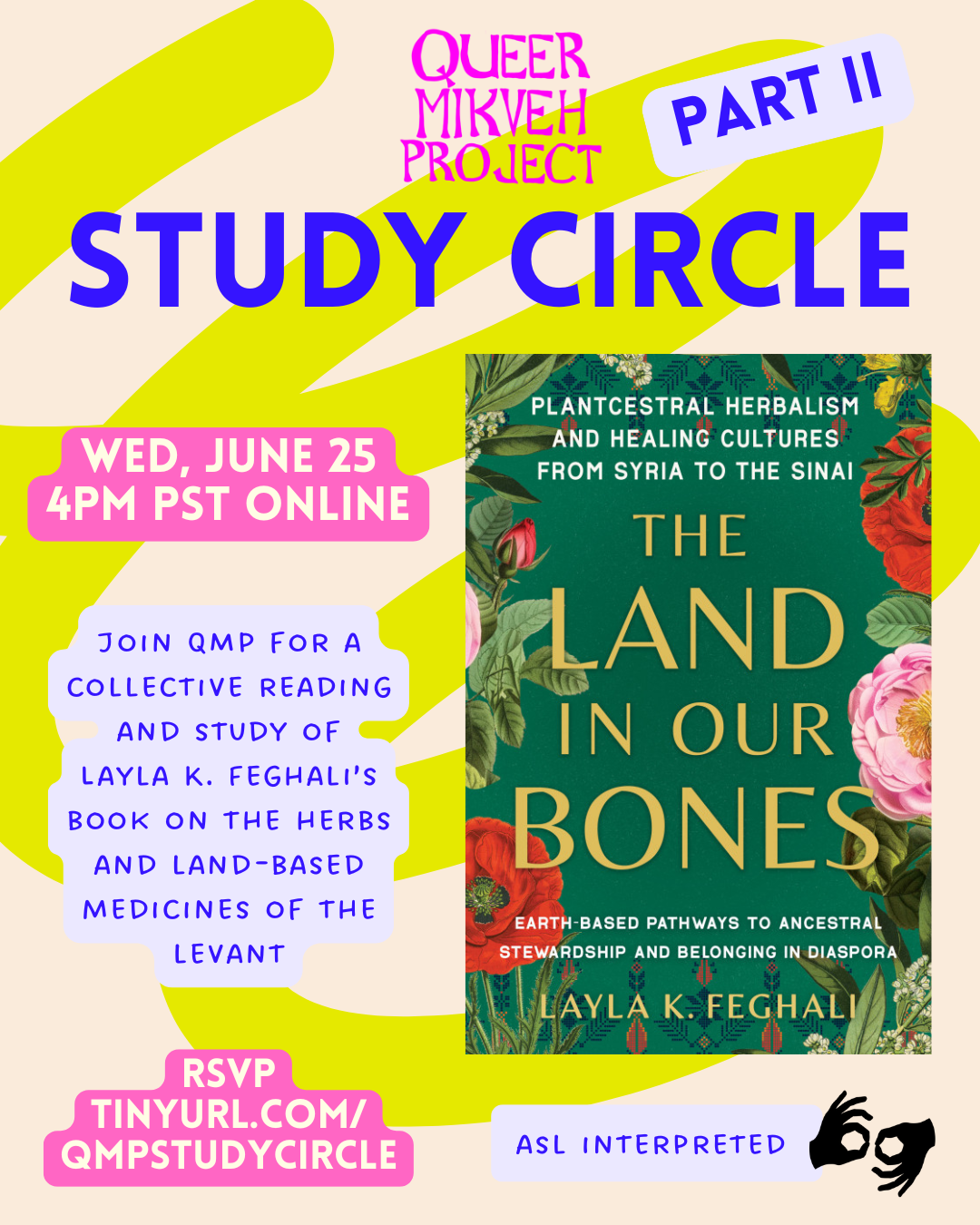 Join Queer Mikveh Project for a second study circle dedicated to engaging with The Land in Our Bones-- Layla K. Feghali’s book on the herbs and land-based medicines of the levant.